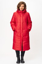 Утепленное стеганное пальто полуприлегающего силуэта с капюшоном, длина до середины бедра
