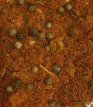 Состав: соль морская, кориандр, паприка, кумин, пажитник, чеснок, куркума, барбарис, перец красный, перец душистый, кардамон.