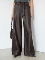 Vilatte Широкие кожаные брюки-трубы с поясом D24.272 коричневый