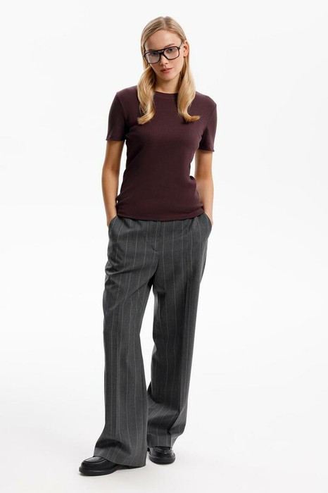Широкие брюки из шерсти с завышенной линией талии. Застегивается спереди на молнию и пуговицу. Пояс со шлевками для ремня.