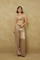Женские брюки зауженного кроя с боковыми карманами из плотного гладкого трикотажа интерлок.