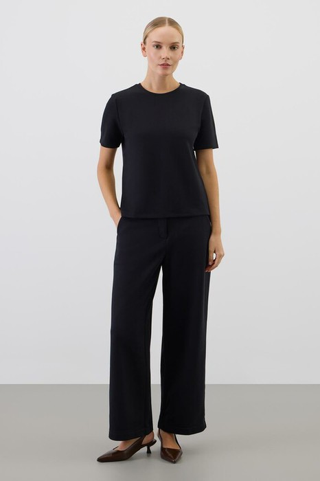 Брюки, выполненные из петельчатого футера трехнитки, отличаются особой текстурой и комфортом. Прямой крой подчеркивает силуэт, создавая классический образ. Боковые карманы придают изделию функциональность.