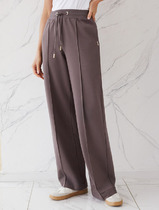Брюки прямого кроя на резинке изготовлены из высококачественного трикотажного полотна DOUBLE FACE. Ткань прошла силиконовую обработку, что придает ей легкость и шелковистую текстуру. Прямой крой акцентирует силуэт, формируя элегантный классический образ. Боковые карманы добавляют изделию практичности.