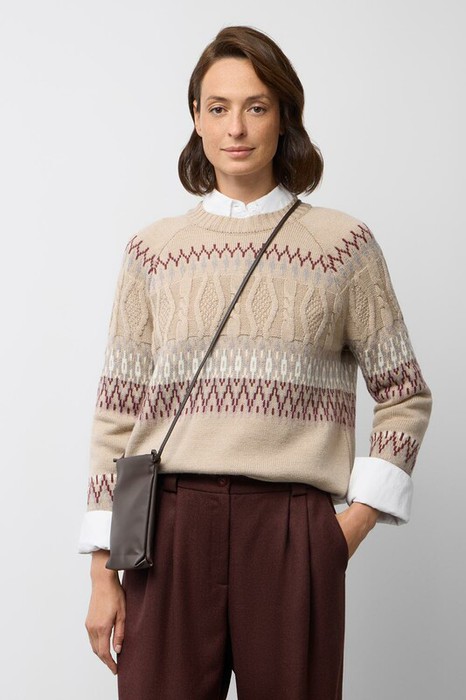 Мягкий джемпер в скандинаском стиле из премиальной пряжи, созданный с использованием инновационной технологии смешанного волокна. Деликатное сочетание шерсти и акрила обеспечивает непревзойденный комфорт: изделие нежно облегает фигуру, гарантирует мягкость прикосновения и сохраняет безупречную форму.