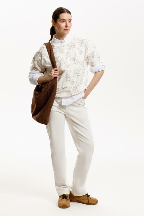 Свитшот с нежными магнолиями изготовлен из мягкого футера с добавлением эластана. Широкие манжеты из эластичного рубчика завершают изделие в классическом его исполнении.