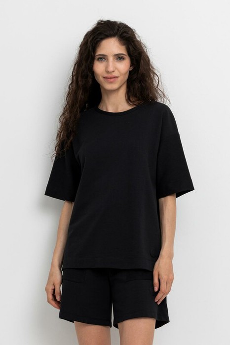 Удлиненная свободная футболка из мягкого футера с рукавами наизнанку.