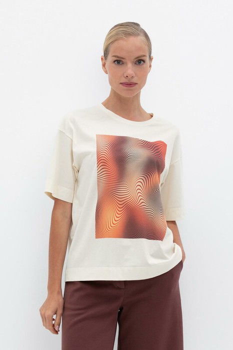 Женская удлиненная футболка из длинноволокнистого гребенного хлопка с фотопринтом.