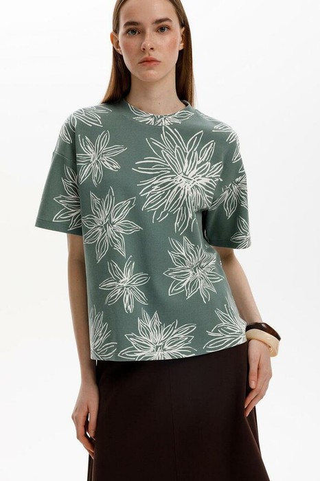 Совместные покупки Нижневартовск Женская одежда Футболки — Very Neat фуфайка жен ЕВТ 3317/зеленый,крупные астры