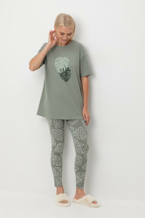 Комплект для сна и отдыха из натурального хлопка. Удлиненная футболка комфортно садится по фигуре. Бриджи из набивного трикотажа с добавлением лайкры с мягким поясом на резинке.