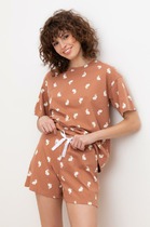 Комплект для комфортного сна и отдыха из трикотажного полотна в рубчик. Свободная футболка с V-образным вырезом. Брюки с мягким поясом на резинке удобно садятся по фигуре.