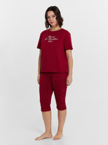 Комплект для комфортного сна и отдыха из трикотажа с нежным рисунком из 100% натурального хлопка. Футболка с короткими рукавами и спущенной линией плеча комфортно садится по фигуре. Шорты с мягким поясом на резинке. В поясе шорт атласная лента. Свободный силуэт не сковывает движения.