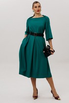 Легкое платье с круглым вырезом со сборками, короткими рукавами из набивного трикотажа супрем. Все трикотажные полотна производятся в соответствии с нормами Швейцарского сертификата ЭкоТекс. Сделано в России