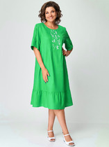 Легкое свободное платье с круглым вырезом на сборке, короткими рукавами из набивного трикотажа супрем.