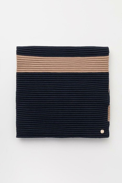Уютный вязаный шарф с полосками из шерсти и акрила. Шерсть в составе сохраняет тепло, а волокна акрила придают изделию мягкость и объем.