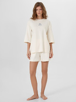 Комфортная сорочка с коротким рукавом выполнена из  высококачественного гребенного хлопка с добавлением модала.  Эластичное кружево нежно обрамляет зону декольте, а свободный крой добавляет комфорта во время сна.