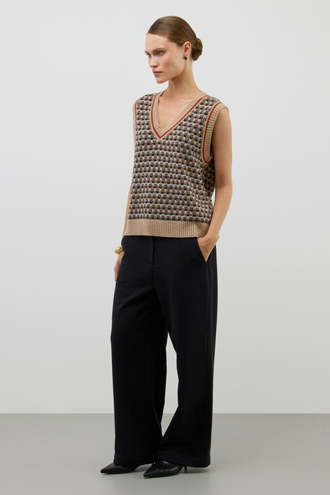 Жилет в кантри-стиле, изготовленный из высококачественной пряжи с применением передовой технологии смешанных волокон. Изысканное сочетание шерсти и акрила создает непревзойденный комфорт: модель деликатно подчеркивает силуэт, обеспечивает нежное прикосновение к коже и сохраняет безупречный внешний вид.