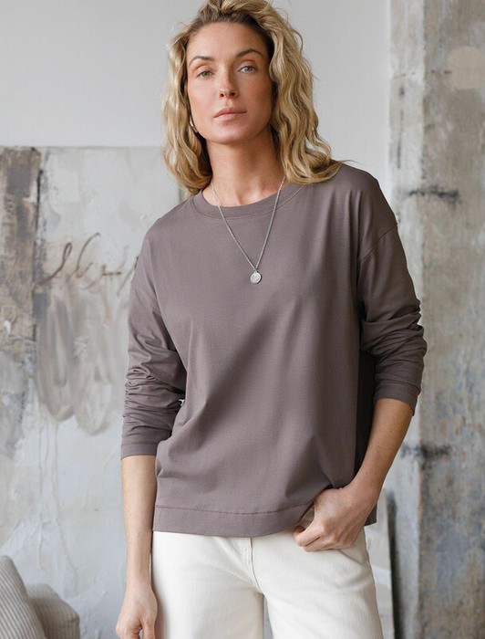 Vilatte Базовый лонгслив из премиального хлопка с эластаном D49.147 кофейный