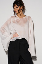 Блузка смотрится нарядно благодаря сочетанию мягкой текстуры сатина и его мягкого не вычурного блеска. Такая повседневная блузка легко впишется в деловой гардероб или станет отличны