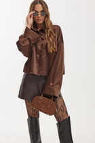 Vilatte Блузка свободная из струящегося плотного сатина D29.279 кофейный