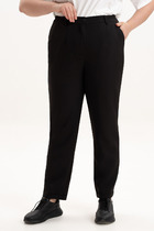 Брюки-дудочки выполнены из джерси. Модель дополнена резинкой сзади, одним вместительным карманом спереди и небольшими боковыми разрезами. Заутюженные стрелки и посадка на талии визуально вытягивают силуэт. Изделие хорошо держит форму, отлично тянется и почти не мнется во время использования. Идеальный вариант в офис или в повседневный классический стиль.