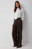 Брюки-дудочки выполнены из джерси. Модель дополнена резинкой сзади, одним вместительным карманом спереди и небольшими боковыми разрезами. Заутюженные стрелки и посадка на талии визуально вытягивают силуэт. Изделие хорошо держит форму, отлично тянется и почти не мнется во время использования. Идеальный вариант в офис или в повседневный классический стиль.