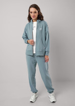 Брюки выполнены из премиального футера трехнитки без начеса. Модель дополнена эластичным поясом на резинке и хлопковым шнурком с золотистой фурнитурой. По бокам два кармана. Наличие эластана в составе гарантирует формоустойчивость и износостойкость изделия. Изделие сочетается в костюме с худи D49.051