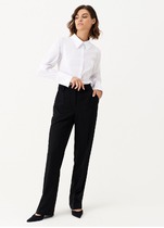 Брюки выполнены из мягкого хлопкового микро-вельвета с добавлением эластана. Изделие комфортно садится по фигуре и не сковывает движения. Модель с пятью карманами, как у джинсов-скинни дополнена высококачественной фурнитурой с фирменным логотипом бренда. Хорошо комбинируется с вязаным трикотажем, блузками и денимом. Как альтернатива брюкам, в нестрогий офисный дресс-код.