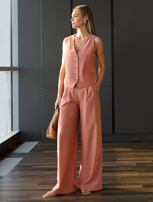 Vilatte Брюки-палаццо из плотного лиоцелла D24.267 дымчато-коралловый