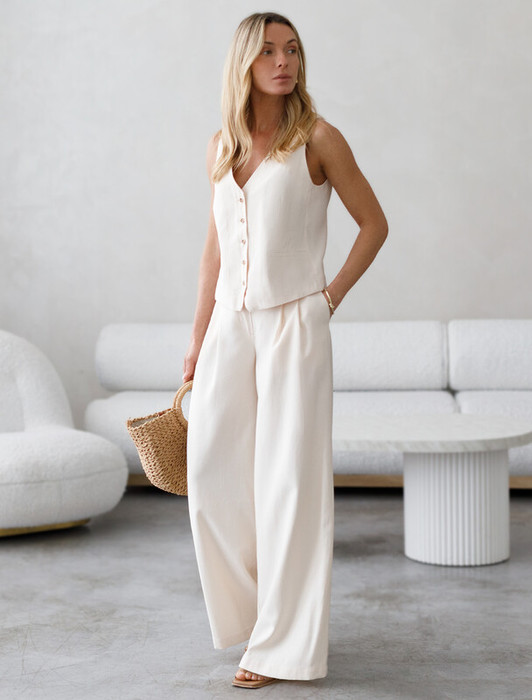 Совместные покупки Нижневартовск Женская одежда Брюки — Vilatte Брюки-палаццо из плотного лиоцелла D24.267 кокосово-молочный