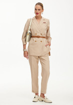 Брюки-палаццо выполнены из костюмной ткани. Свободная модель дополнена карманами и поясом на резинке сзади. Посадка на талии и заутюженные стрелки визуально удлиняют ноги и вытягивают силуэт. Идеальный вариант для офисного дресс кода или в повседневный классический стиль.