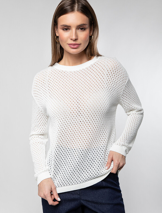 Совместные покупки Нижневартовск Женская одежда Джемперы, свитеры, водолазки — Vilatte Джемпер из гладкой вискозы с лиоцеллом D39.630 белый