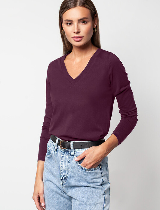 Совместные покупки Нижневартовск Женская одежда Джемперы, свитеры, водолазки — Vilatte Джемпер из премиального хлопка с эластаном D49.958 бургунди