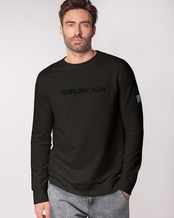 Джемпер выполнен из легкого футера с эластаном. Авторский принт выполнен красками с устойчивым покрытием. Мягкий материал хорошо пропускает воздух и поддерживает оптимальный микроклимат даже в жаркое время года. На рукаве нашивка логотип бренда из эко-кожи.