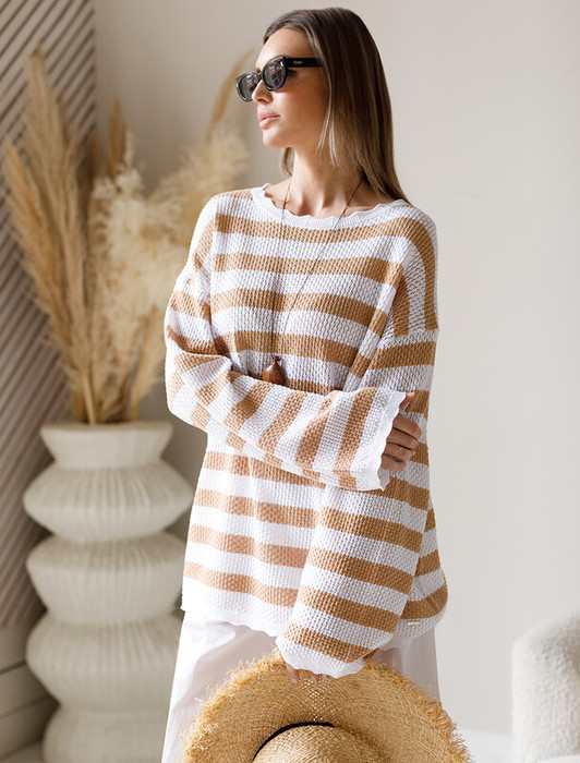 Vilatte Джемпер связанный узором из мягкой пряжи D39.266 белый_имбирь
