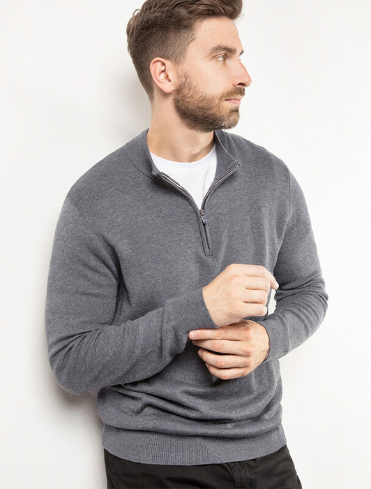 Совместные покупки Нижневартовск Мужская одежда Джемперы, свитеры — 22.03 Vilatte Джемпер тонкой вязки из хлопка U39.000 темно-серый