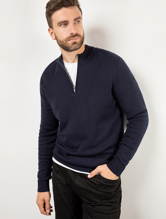 Совместные покупки Нижневартовск Мужская одежда Джемперы, свитеры — Vilatte Джемпер тонкой вязки из хлопка U39.000 темно-синий