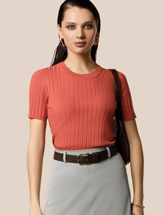 Джемпер тонкой вязки из вискозы с нейлоном. Модель с круглым вырезом прилегающего силуэта. Мягкая очень приятная к коже пряжа хорошо держит форму и гарантирует комфорт во время носки в течение всего дня. Изделие дополнено фирменным металлическим логотипом бренда.
