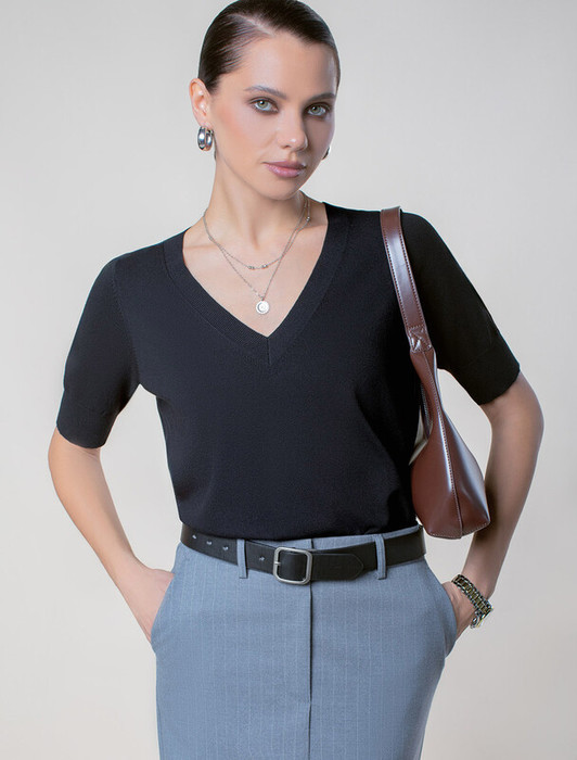 Совместные покупки Нижневартовск Женская одежда Джемперы, свитеры, водолазки — Vilatte Джемпер тонкой вязки из вискозы с нейлоном D39.355 черный