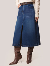Vilatte Джинсовая юбка из плотной эластичной джинсы 13.8OZ. D56.122 темно-синий