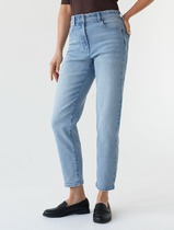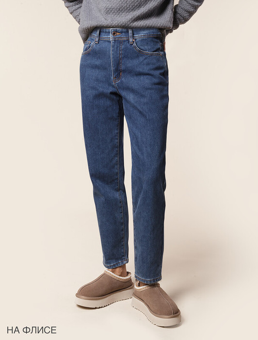Джинсы силуэта mom-fit выполнены из эластичного денима. Внутренняя сторона изделия утепленная мягким флисом надежно защищает от холода и ветра. Любимая во всем мире модель с посадкой на талии подчеркивает фигуру и скрывает недостатки. Мастхэв на холодную осень и зиму и самый удобный элемент повседневного гардероба.