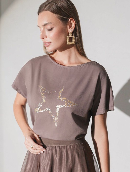 Vilatte Футболка D49.133 кофейный_star