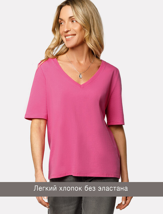 Совместные покупки Нижневартовск Женская одежда Футболки — Vilatte Футболка из 100% хлопка с V-образным вырезом D49.091 розовая фуксия