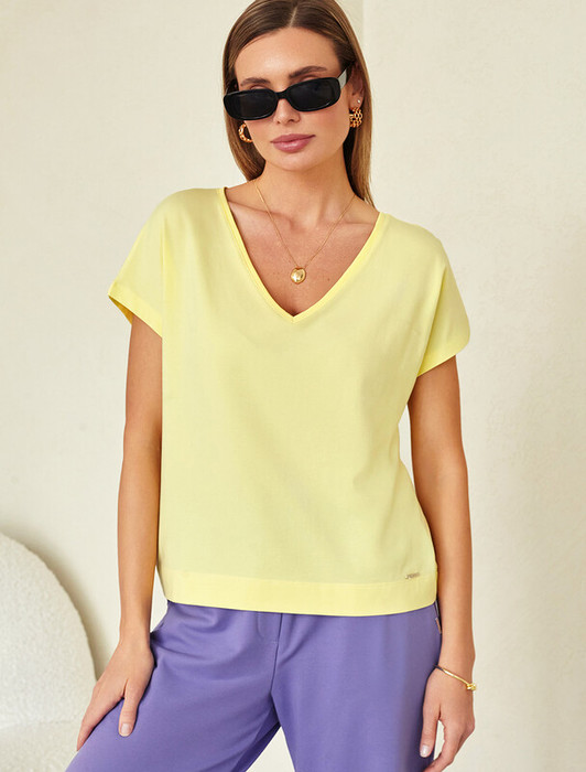 Футболка с цельнокроеным рукавом выполнена из премиального хлопка. Базовая однотонная модель идеально впишется в любой гардероб. V-вырез подчеркивает ключицы и удлиняет шею, хорошо сочетается с жакетами или кардиганами. Изделие дополнено металлическим логотипом бренда.