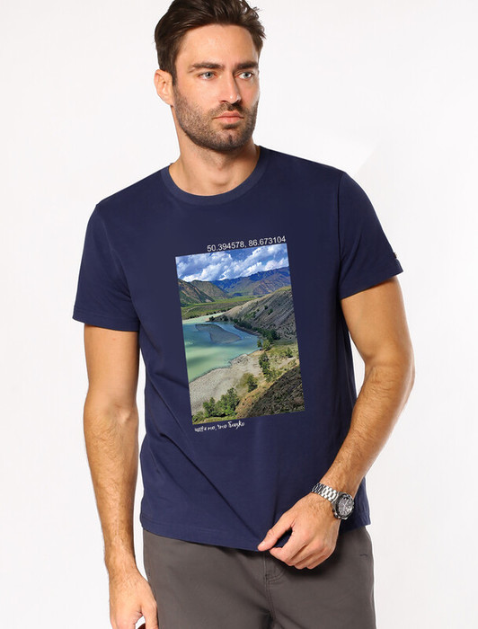 Совместные покупки Нижневартовск Мужская одежда Футболки — Vilatte Футболка из премиального хлопка с авторским принтом U49.026 темно-синий_
