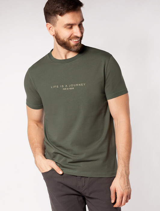 Совместные покупки Нижневартовск Мужская одежда Футболки — Vilatte Футболка из премиального хлопка с авторским принтом U49.026 т.оливковый_