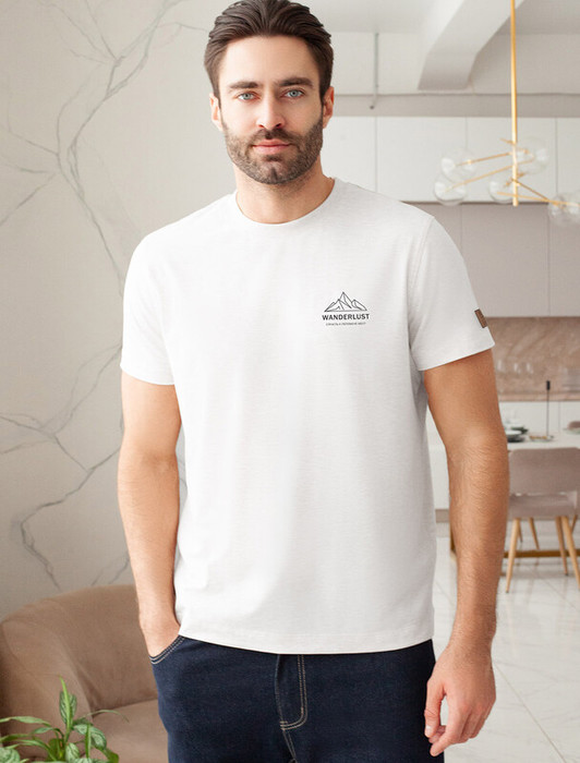 Совместные покупки Нижневартовск Мужская одежда Футболки — Vilatte Футболка из премиального хлопка с авторским принтом U49.045 белый_wander