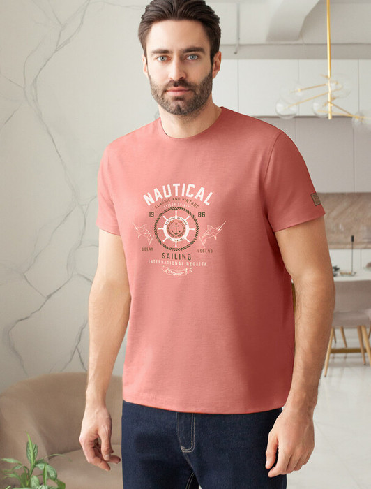 Совместные покупки Нижневартовск Мужская одежда Футболки — Vilatte Футболка из премиального хлопка с авторским принтом U49.045 коралловый_r