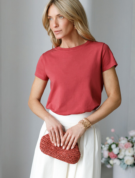 Совместные покупки Нижневартовск Женская одежда Футболки — Vilatte Футболка из премиального хлопка с эластаном D49.980 т.красный