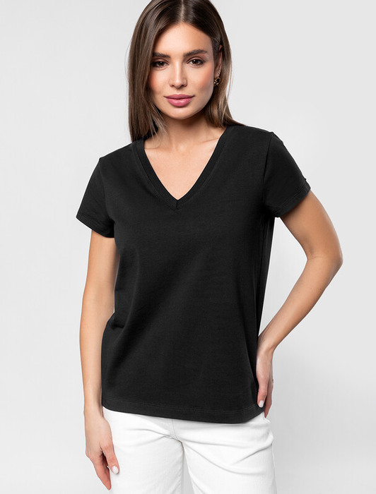 Совместные покупки Нижневартовск Женская одежда Футболки — Vilatte Футболка из премиального хлопка с эластаном D49.982 черный