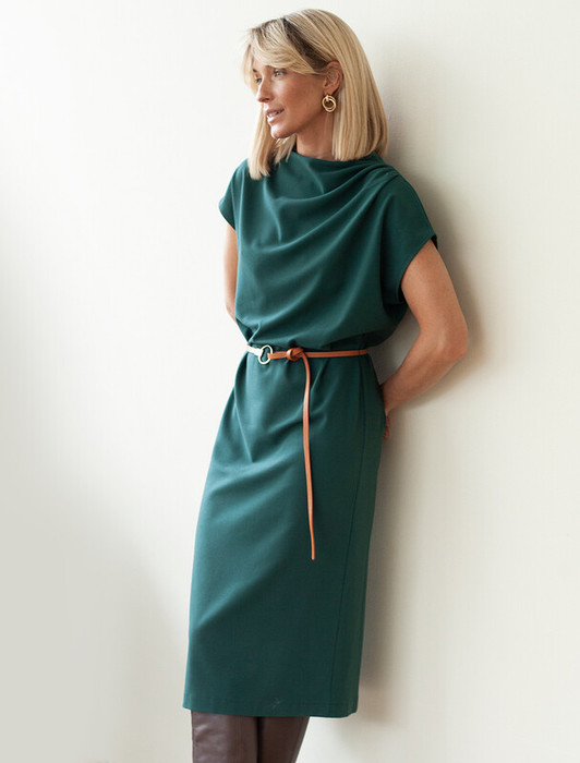 — Vilatte Платье из эластичного крепа с ремешком в подарок D22.525 зеленый